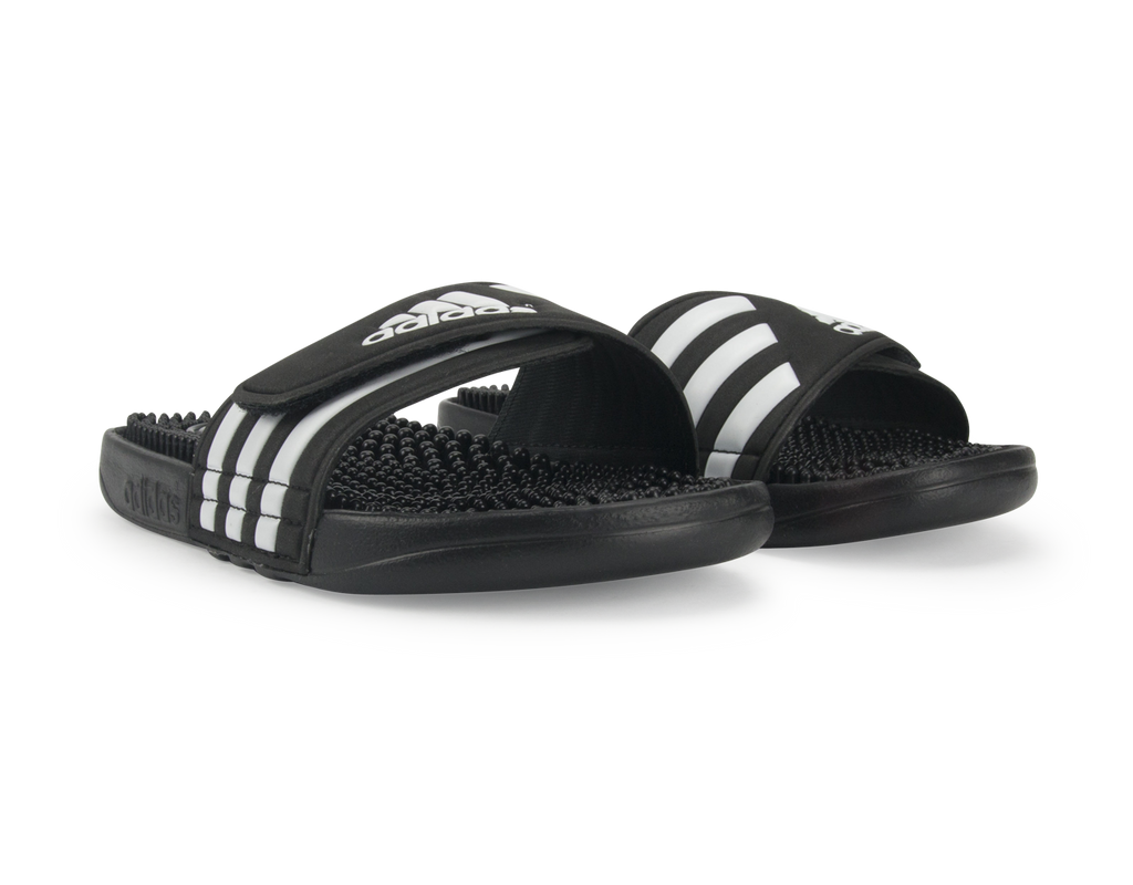 This Adidas Kids Addisage Sandal features the classic popular slide, now in childrens sizing. Features: Slide PVC free synthetic bandage and lining Synthetic lining TPR footbed with popular massage nubs Non marking Injected EVA lightweight outsole.