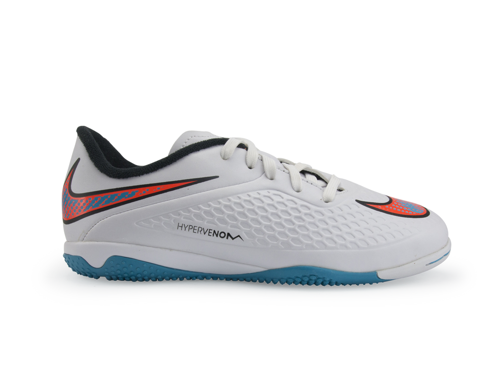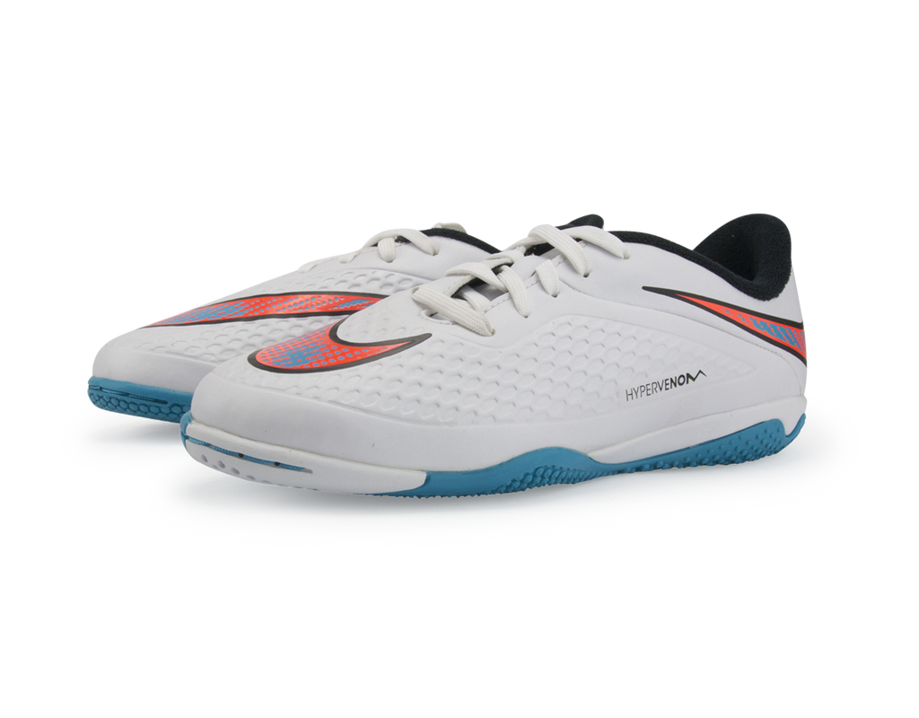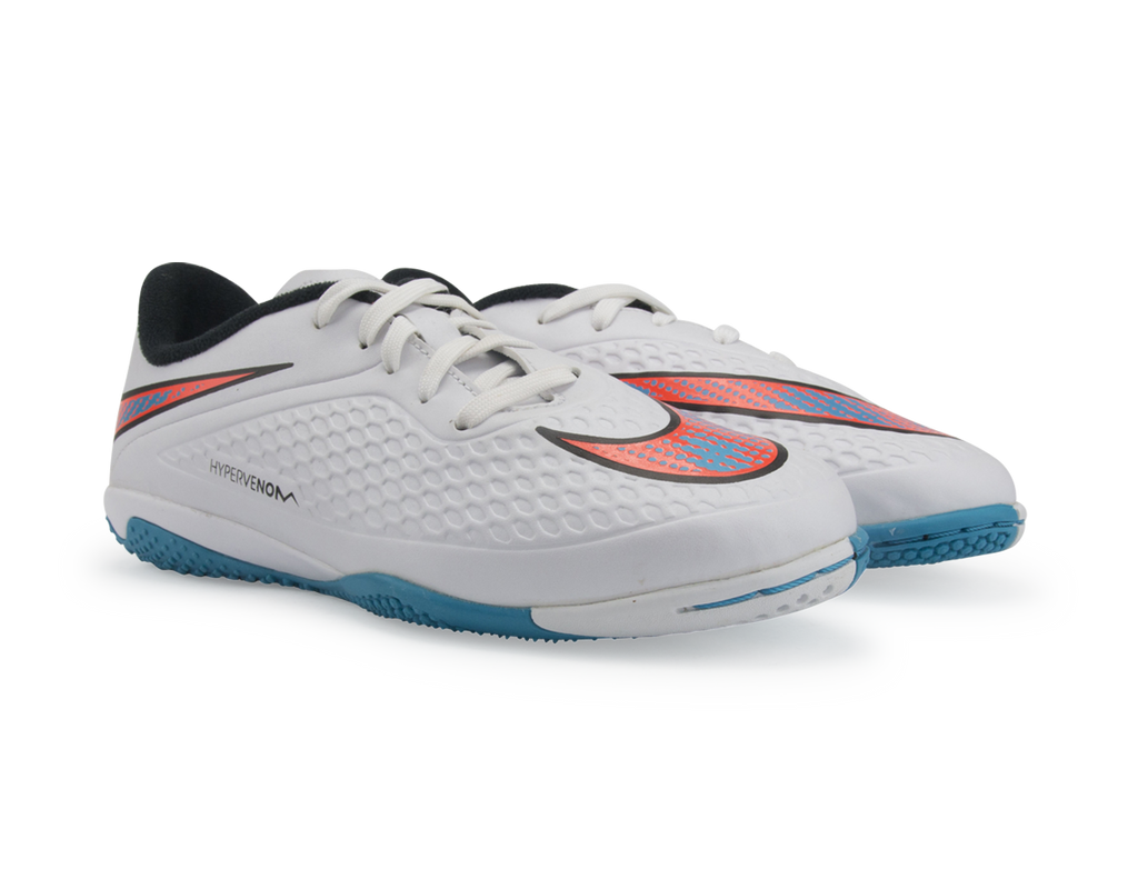 Nike Kids Hypervenom Phelon Indoor Soccer Shoes White/Blue Lagoon/Total Crimson