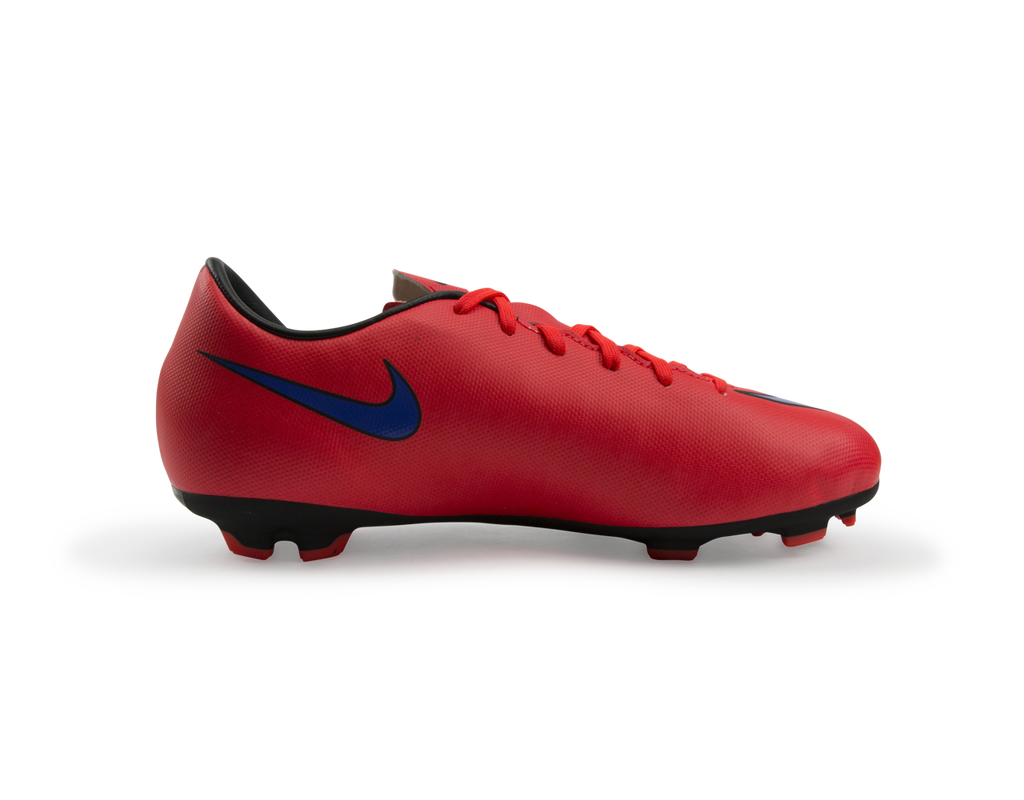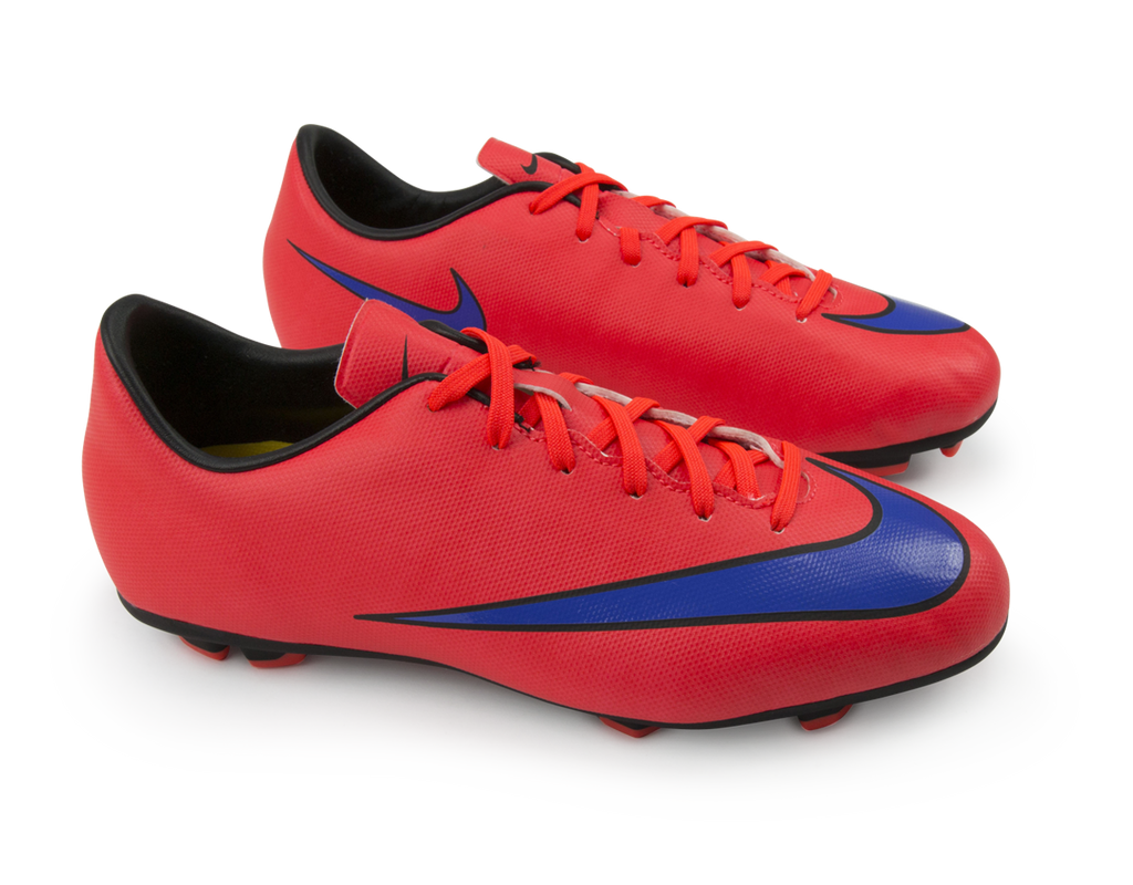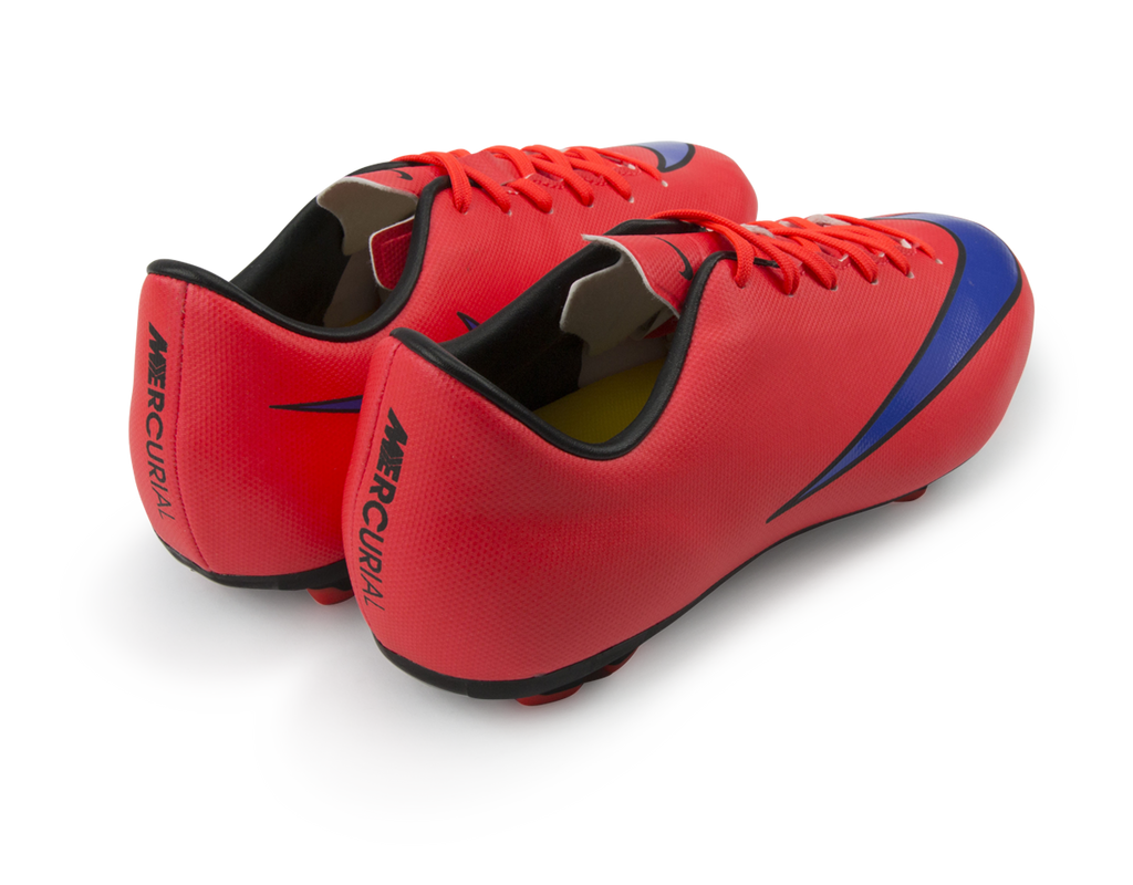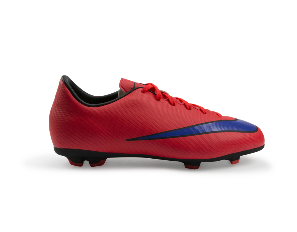 The Nike Jr Mercurial Victory V Firm-Ground Soccer Cleat is built for fast-paced play with an innovative outsole pattern designed for traction and speed on firm ground. Soft, supple synthetic leather for stability, ideal fit and better ball control. Contoured sockliner mirrors the foot shape for premium support and low-profile cushioning. Molded rubber outsole with Vapor traction pattern for superior traction