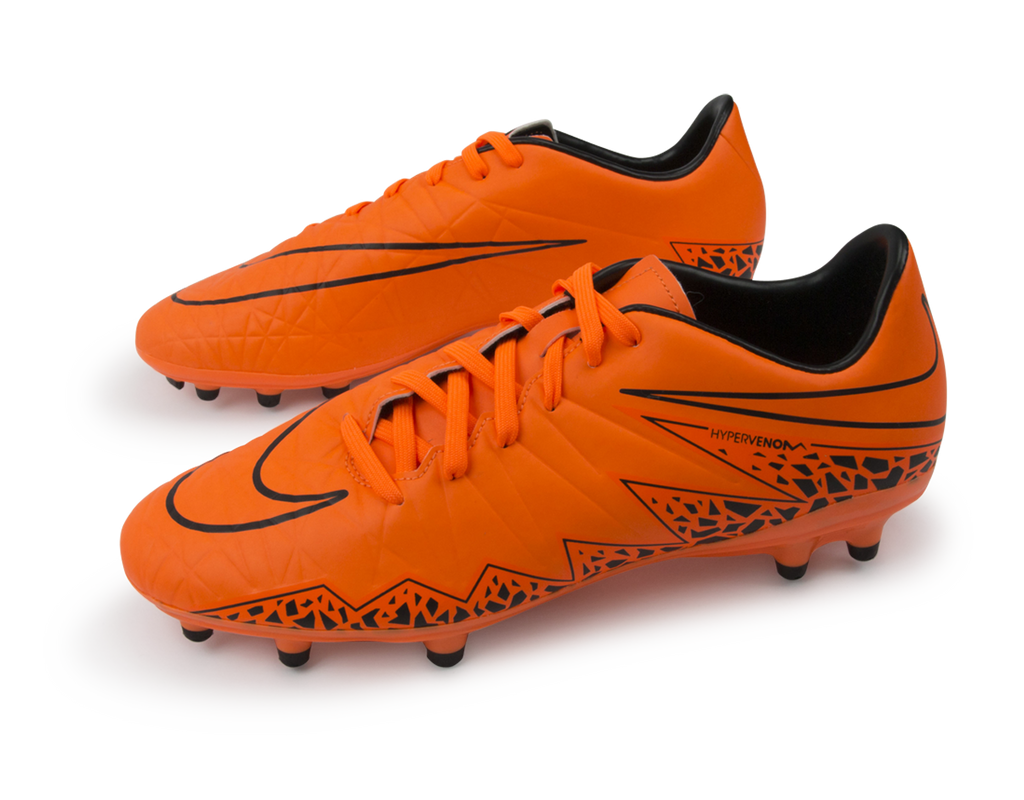 With a glove-like fit, the Nike Hypervenom Phelon (FG) Men's Firm-Ground Football Boot is built for unrivaled agility on firm, natural surfaces. An innovative traction pattern only places cleats where they're needed for faster release and maximum responsiveness. Soft, thin synthetic leather upper for a great fit and ball feel. Contoured last mirrors the shape of the foot for a glove-like fit. Agility traction pattern for faster release and maximum responsiveness. Shortened lace area to increase the size of the vamp and strike zone. Firm-ground (FG) cleats for use on short-grass fields that may be slightly wet but rarely muddy. Full-length TPU plate for a supportive, responsive feel. Round forefoot cleats for multidirectional traction. Toe and midfoot blades for enhanced toe-off traction. Contoured sockliner with textile top layer for soft, supportive cushioning. Synthetic Leather