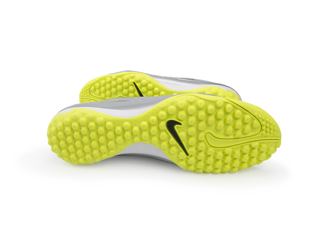 The Neymar Hypervenom Phelon II (TF) Men's Turf Football Boot is built for unrivaled agility on synthetic surfaces with an anatomical fit for effective lockdown. Its textured, leather-like upper enhances ball touch for maximum control. The anatomically correct shape creates a glove-like fit for on-pitch agility. Asymmetrical lacing system expands the ball control area and strike zone. Leather-like upper is textured for improved touch. Molded, perforated sockliner cushions to help reduce stud pressure.