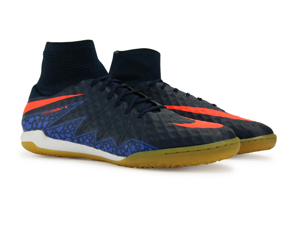 Nike Men's HypervenomX Proximo Indoor Soccer Shoes Obsidian/Total Crimson/Coastal Blue