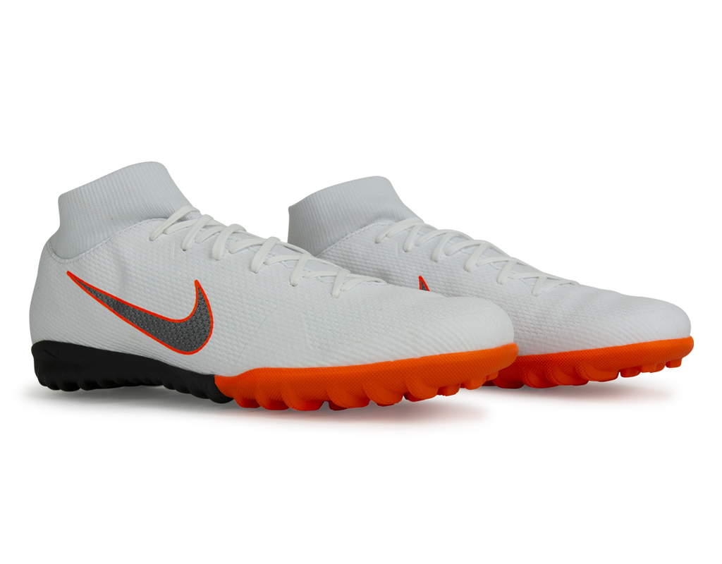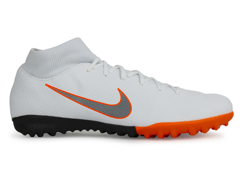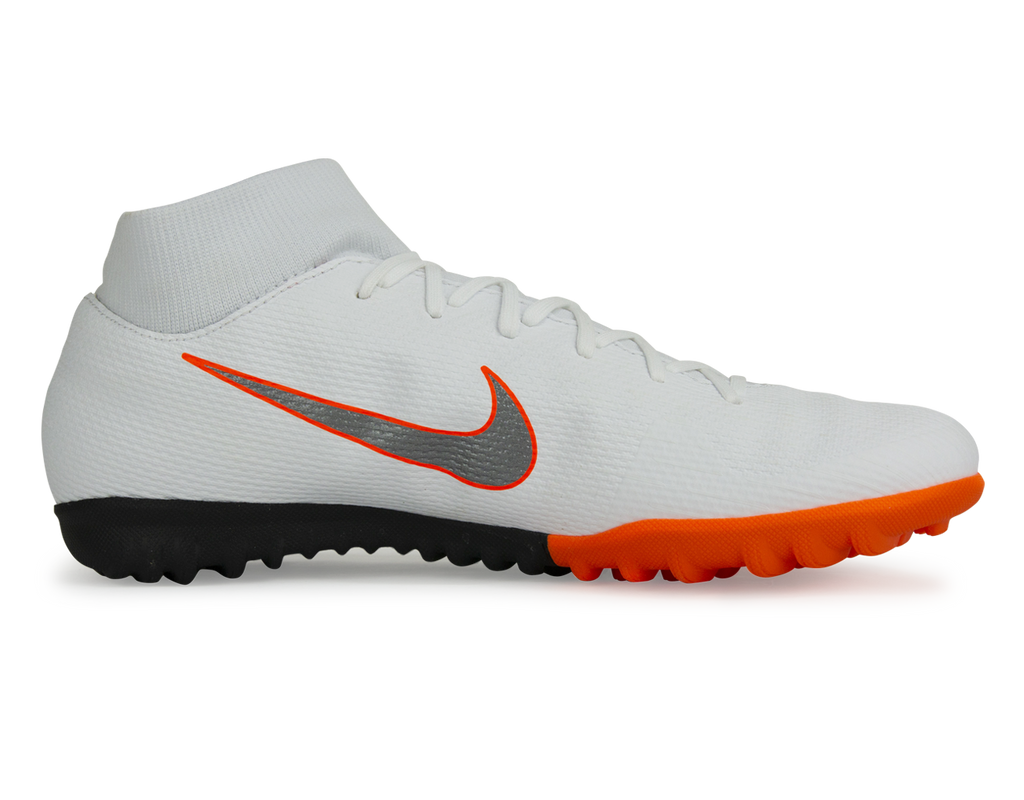 Nike Men's Mercurial SuperflyX 6 Academy Turf Soccer Shoes White/Metalic Cool Grey/Total Orange