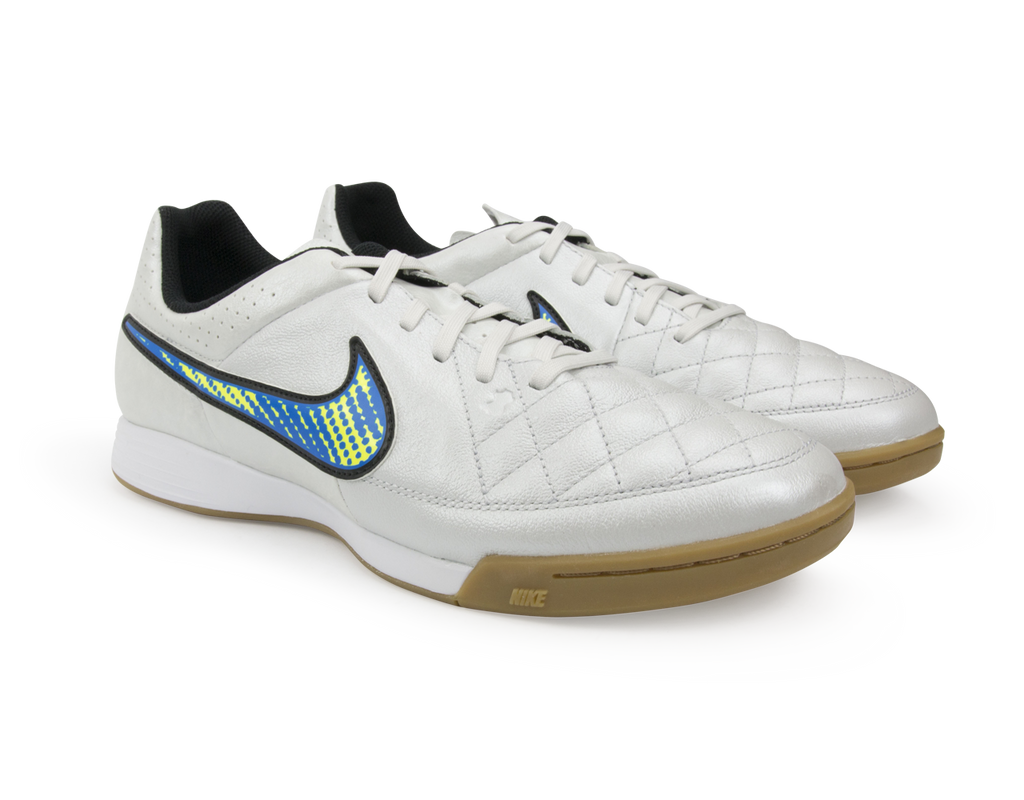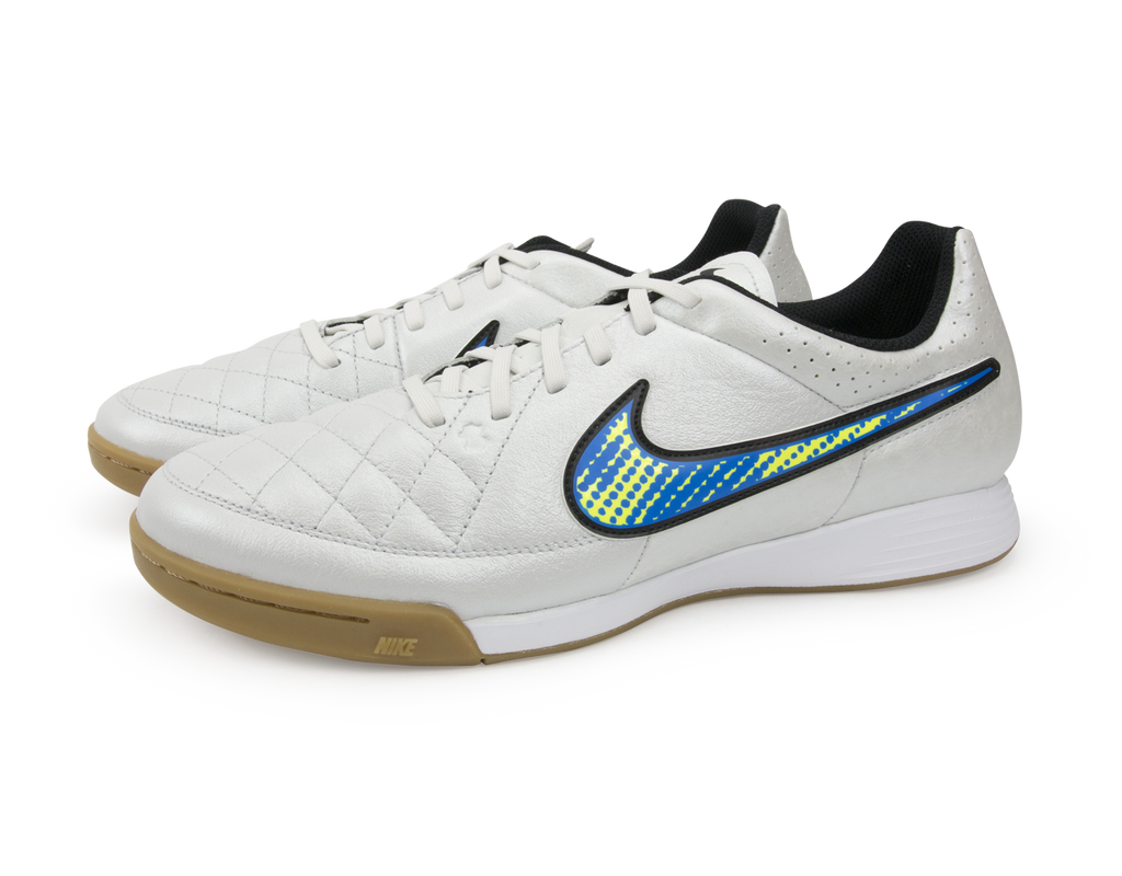 Nike Men's Tiempo Genio Leather Indoor Soccer Shoes White/Volt/Soar/Black