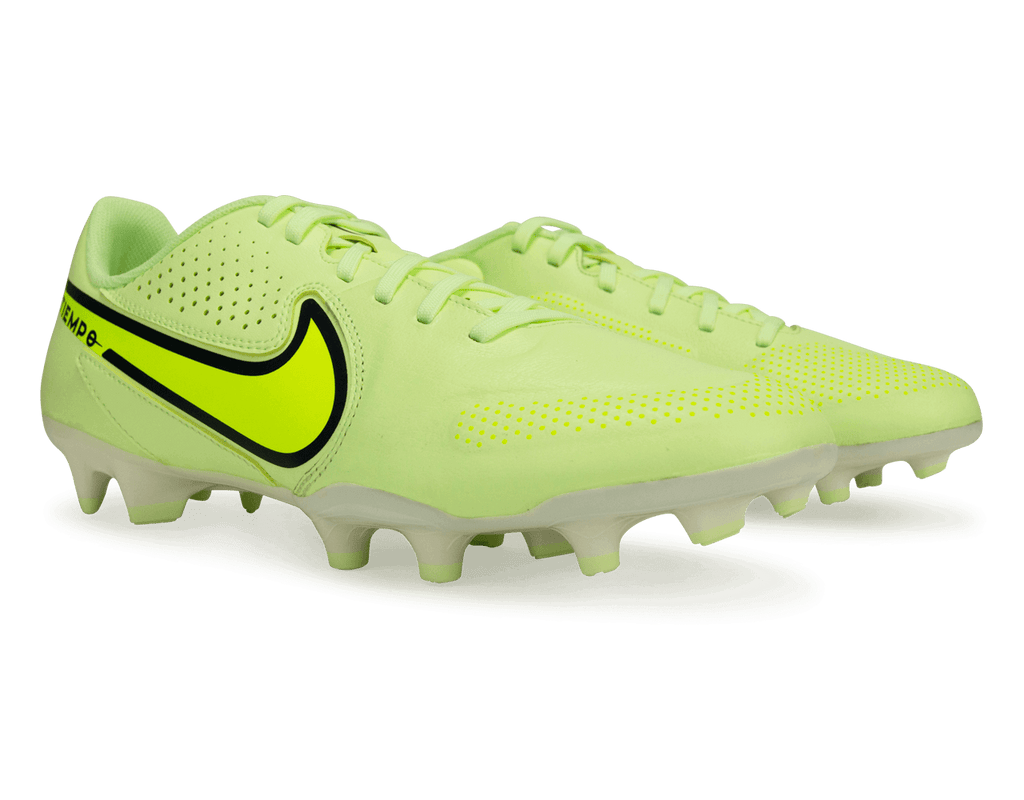 One of the lightest Tiempos to date, the Nike Men's Tiempo Legend 9 Academy FG/MG soccer cleats let you go on the offensive with a low-profile design that's reinvented for attackers. The upper has raised textures backed by soft foam pods for precise dribbling, passing and shooting, while studs on the bottom provide traction for quick cuts and sudden stops.